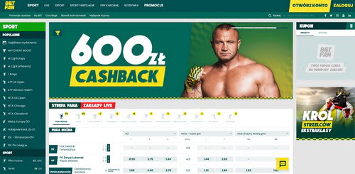 Podając przy rejestracji w Betfan wspomniany wyżej kod, otrzymasz najwyższy możliwy do uzyskania bonus powitalny od tego bukmachera. Mariusz Pudzianowski potroi Twoją pierwszą wpłatę, aż do kwoty 400 zł. Oznacza to, że dokonując po raz pierwszy depozytu do Betfan w kwocie co najmniej 50 zł, automatycznie na Twoje konto bonusowe w Betfan trafi dodatkowo aż dwukrotność wpłaconej kwoty.