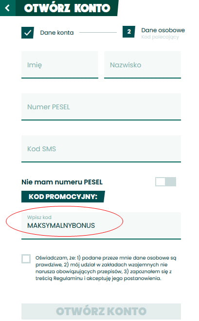 Nie ryzykuj rejestracji z jakimś innym kodem, gdyż możesz otrzymać gorsze bonusy powitalne! Użyj pewnego kodu promocyjnego z gwarancją.