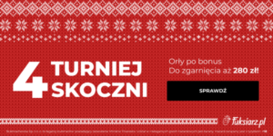 Fuksiarz z okazji Turnieju Czterech Skoczni zorganizował specjalną promocję, w której gracze mogą zgarnąć nawet 280 zł bonusu. Wysokość kwoty dodatkowych środków od bukmachera będzie zależała od dyspozycji naszych skoczków. Za każdy z czterech konkursów można odebrać do 70 zł, czyli łącznie wspomniane 280 zł. Miejsca w pierwszej 30. Biało-Czerwonych będą premiowane nagrodami. Bonusy za rezultaty dwóch najlepszych zawodników reprezentacji Polski będą kumulowane, co w efekcie da finalną kwotą za konkretny konkurs.