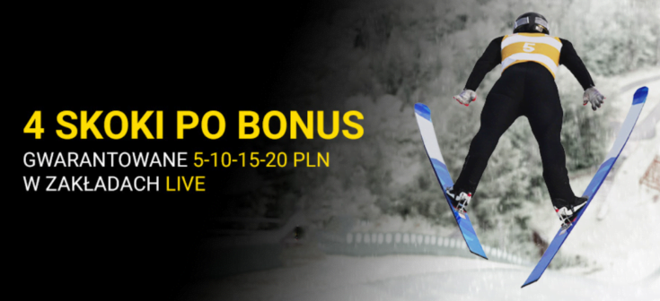 Już dziś rozpoczyna się wyczekiwany przez kibiców skoków narciarskich Turniej Czterech Skoczni. Z tej okazji bukmacher Fortuna ma dla graczy specjalną promocję „4 Skoki Po Bonus”. Typerzy, którzy w czasie trwania akcji obstawią zakłady bukmacherskie na skoki narciarskie z oferty live, otrzymają bonus gwarantowany w kwocie do 20 zł.