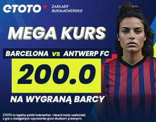 Bukmacher ETOTO uruchomił 17 września specjalną promocję na jutrzejszy mecz FC Barcelona – Royal Antwerp FC: „Mega Kurs – Barcelona VS Antwerp FC”. Oferta skierowana jest wyłącznie do nowych graczy…