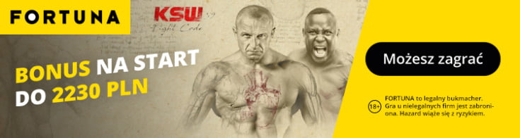 Fortuna przygotowała bonus gwarantowany dla graczy obstawiających sobotnią galę KSW 59. W ramach promocji można otrzymać aż 100 zł środków bonusowych.