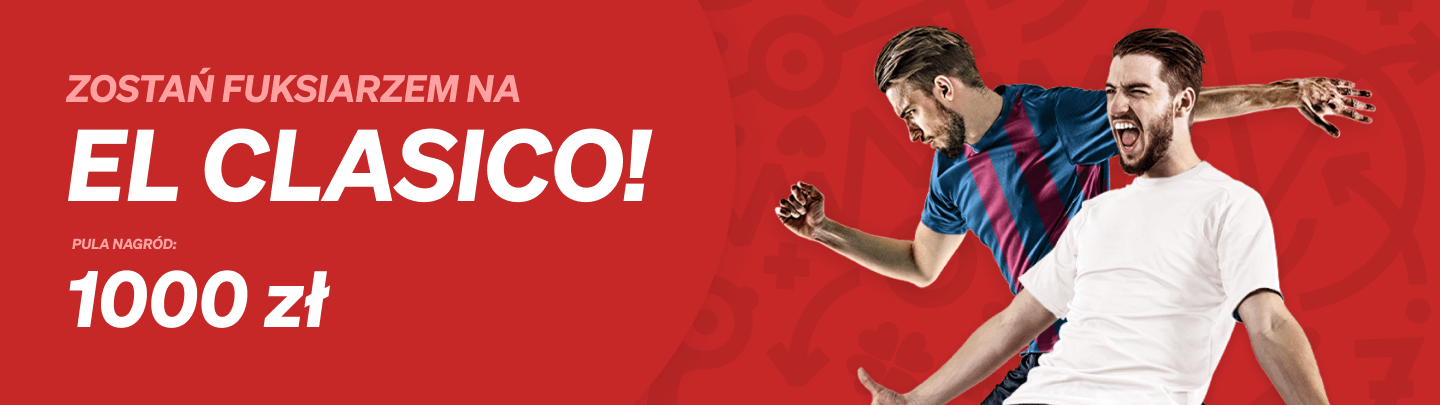 Z okazji piłkarskiego święta, jakim zawsze jest mecz Realu z Barceloną, bukmacher Fuksiarz przygotował specjalną promocję. Obstawiając najbliższe El Clásico, gracze mogą uzyskać nagrody, których łączna pula wynosi 1.000 zł.
