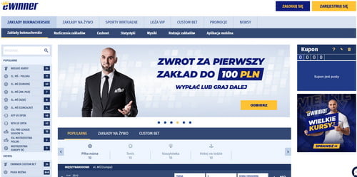 Pomimo wielu innowacyjnych rodzajów zakładów, wszyscy bukmacherzy koncentrują się na zakładach na sport i nie inaczej jest w przypadku bukmachera eWinner. Dyscyplin do obstawiania jest tu sporo: najszersza oferta dotyczy sportów cieszących się w Polsce największym zainteresowaniem (np. piłka nożna, tenis, koszykówka itp.), ale można obstawiać też bardziej niszowe dyscypliny (np. Formułę 1, darta czy nawet szachy). eWinner oferuje też zakłady na różne gry e-sportowe, takie jak np. Counter-Strike, LoL czy Rainbow Six. Wydarzeń do typowania jest całkiem dużo, a dla najbardziej popularnych spotkań bukmacher udostępnia szerokie rynki zdarzeń. Przebieg wielu spotkań sportowych można oczywiście obstawiać, grając zakłady przedmeczowe, ale też na żywo. Poza zakładami na sport w eWinner dostępne są również zakłady bukmacherskie na prawdziwe wydarzenia, które nie mają charakteru sportowego, czyli np. zakłady dotyczące wydarzeń politycznych (oznaczone jako „zakłady specjalne”). Dodajmy też, że eWinner posiada nowatorską w skali kraju opcję „Custom Bet”, czyli zakładów własnych. Narzędzie to umożliwia graczom zgłaszanie bukmacherowi propozycji zakładów, które ten powinien wprowadzić do swojej oferty.