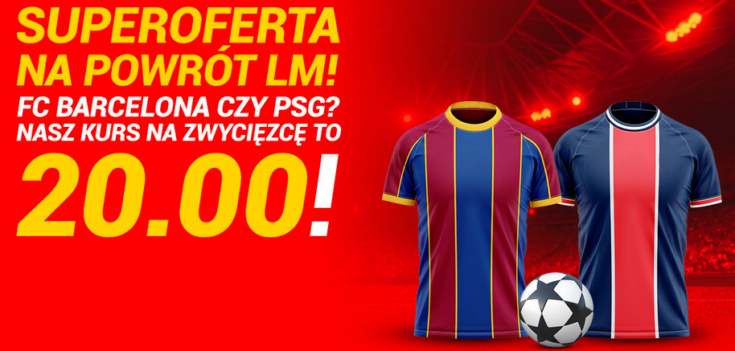Superbet oferuje superkurs 20,00 na mecz Barcelony z PSG! Niezależnie od tego, czyje zwycięstwo obstawisz, jeśli trafisz, otrzymasz wygraną z kuponu i bonus w postaci wygranej z kursem 20.00!