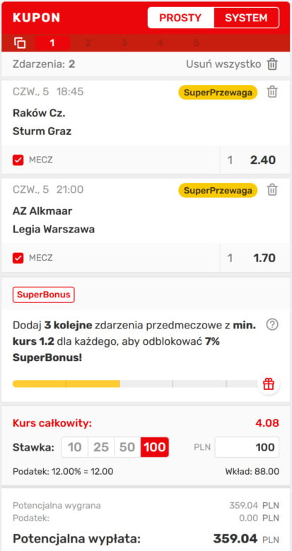 Kupon bukmacherski na dziś w Superbet