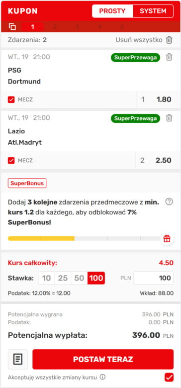 Kupon bukmacherski na dziś w Superbet