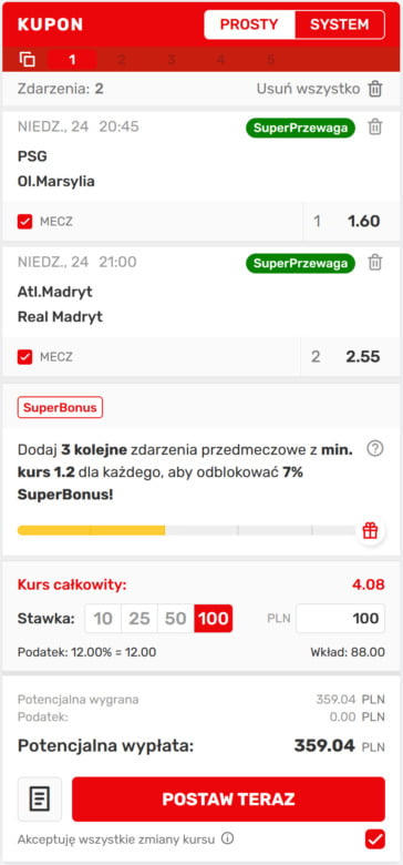 Kupon bukmacherski na dziś w Superbet