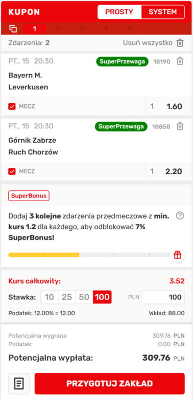 Kupon bukmacherski na dziś w Superbet