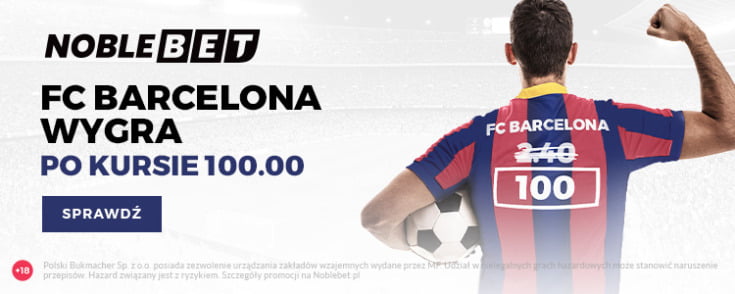 Noblebet udostępnia promocję, w ramach której wygraną FC Barcelony w sobotnim meczu z Realem Madryt można obstawić po kursie 100,00. Promocja dostępna jest dla wszystkich graczy, którzy założą konto w Noblebet i dokonają depozytu.