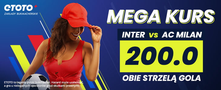 Bukmacher ETOTO uruchomił dziś specjalną promocję na nadchodzące piłkarskie derby Mediolanu – „Mega Kurs – Inter VS AC Milan”. Oferta skierowana jest wyłącznie do nowych graczy i pozwala otrzymać dodatkowe 200 zł bonusu powitalnego.