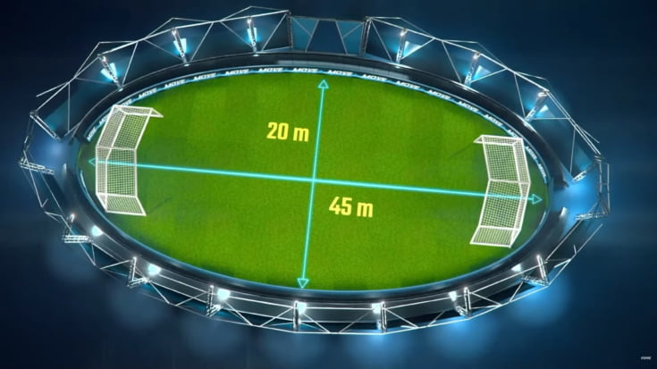 – Zostało znacznie zmniejszone, do wymiarów 45m x 20m (standardowy rozmiar boiska w klasycznym futbolu to 105m x 68m).