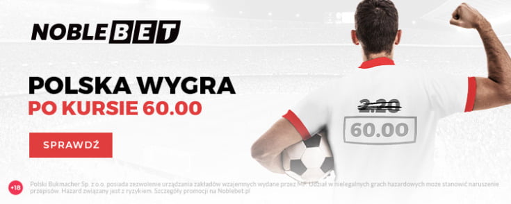 Bukmacher Noblebet przygotował wyjątkową ofertę na zbliżający się mecz Polska – Węgry. Nowi gracze mogą obstawić zwycięstwo Biało-Czerwonych po kursie aż 60,00!