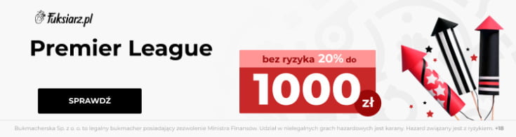 Fuksiarz przygotował wystrzałową promocję na Premier League. Obstawiaj 20. i 21. kolejkę ligi angielskiej bez ryzyka! Bukmacher zwraca środki za nietrafione kupony. Do zgarnięcia jest aż 1000 zł.
