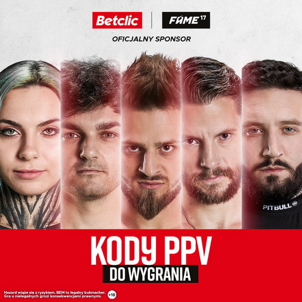 Załóż konto w Betclic w 2 minuty i odbierz darmowy kod PPV na Fame MMA 17Karta walk Fame MMA 17 wraz z kursami wystawionymi przez Betclic
