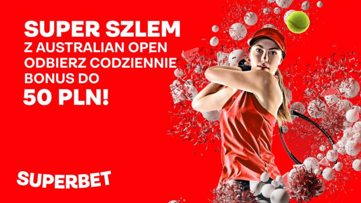 Nowy sezon tenisowy to w Superbet okazja, by złapać bonus do 50 zł. Fani tenisa mają taką możliwość każdego dnia aż do zakończenia Australian Open!