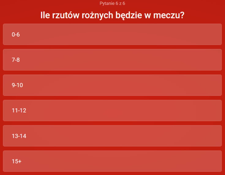 Pytanie 6. – Ile rzutów rożnych będzie w meczu?