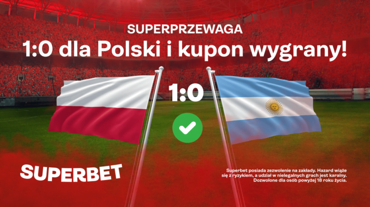 Bukmacher Superbet uruchomił bardzo atrakcyjną promocję dla graczy, którzy planują postawić zakład na środowy mecz Polska – Argentyna w ramach piłkarskiego Mundialu 2022 w Katarze. Omawiana promocja Superbet jest specjalną edycją stałej oferty bukmachera o nazwie „SuperPrzewaga”, w której Superbet rozlicza zakłady na piłkę nożną jako wygrane już po objęciu 2-bramkowego prowadzenia przez obstawiony zespół (promocja dotyczy także innych dyscyplin, jak tenis, koszykówka czy siatkówka). Specjalna, ulepszona Superprzewaga na mecz Polski z Argentyną pozwala każdemu klientowi cieszyć się jeszcze łatwiejszym warunkiem, by uzyskać pozytywne rozstrzygnięcie zakładu. Wystarczy już jednobramkowe prowadzenie Polaków, aby móc oglądać dalszą część spotkania bez obaw o nasz kupon!