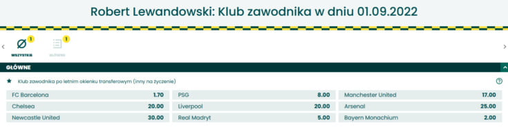 Kursy bukmacherskie na klub Roberta Lewandowskiego 01.09.2022