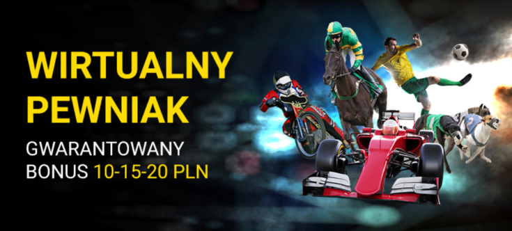 W ten weekend obstawiając w Fortunie zakłady bukmacherskie na sporty wirtualne, możesz otrzymać gwarantowany bonus w kwocie nawet 20 zł. W akcji promocyjnej udział biorą zakłady na dowolne zdarzenia znajdujące się w ofercie na sporty wirtualne, czyli na wirtualną piłkę nożną, wyścigi konne, wyścigi psów, samochody i żużel.